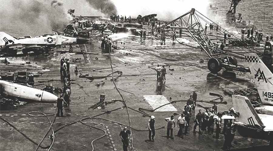 火災一直是艦船的噩夢,不僅威脅到全體船員的安全,造成的連鎖反應也是不可估量的。1951年-2008年美國航母發生火災共計18次,最著名的是1967年福雷斯特號航空母艦的大火,其中有134名水手死亡,另有161人受傷。美國小鷹號航空1968年機庫外的儲藏室曾經發生過火災,1969年美國企業號核動力航母、福萊斯特號發生火災,1994年核動力航母喬治華盛頓號同樣也應為火災引起了相當嚴重的事故。2008年再次因火災損失高達7000萬美元等。