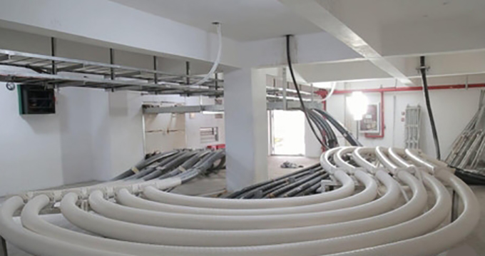 根據防火治理第三條,高壓電纜在隧道、電纜溝、變電站內、橋梁內應選用阻燃電纜,其成束阻燃性能應不低于C級。隧道、溝道,豎井、橋架、橋梁、夾層內的非阻燃高壓電纜應采取繞包防火帶、涂刷防火涂料等防火措施。